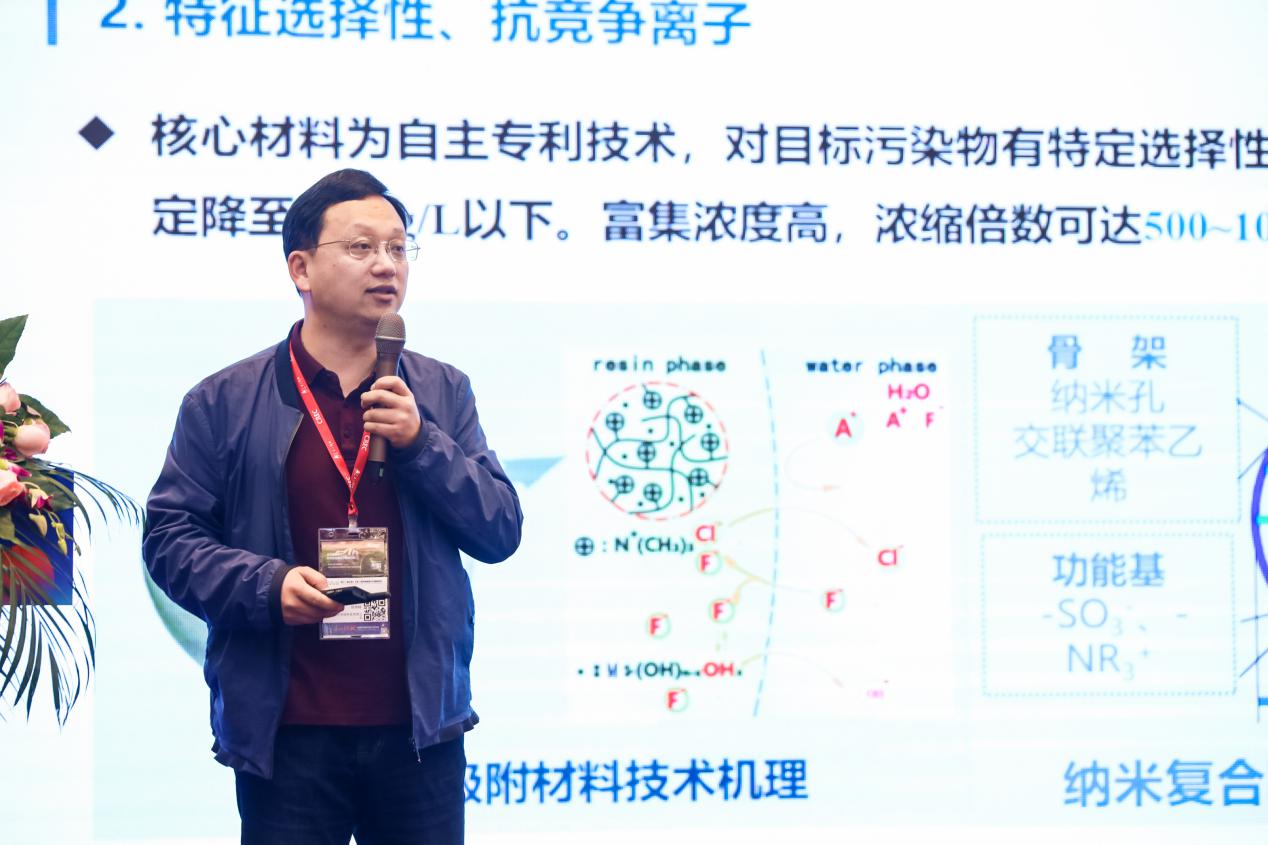國家環境保護有機化工廢水處理與資源化工程技術中心主任、南京大學教授/博導、南大環保副總經理張煒銘為現場嘉賓詳細介紹了深度除氟除磷一體化解決方案的特點及優勢。他表示,隨著我國經濟發展與環境污染日漸嚴重,應急水處理需求越來越多,例如企業廢水庫潰壩、廢水泄露、黑臭水體治理等,需要在短時間內處理至地表水水質標準后達標排放。南大環保深度除氟除磷撬裝設備可滿足不同場景下的水體應急處理需求,依托自主研發的特定選擇性、抗競爭離子核心專利技術,能夠很好地解決水處理行業中氟化物和磷酸鹽的深度去除難題,廢水經過撬裝設備的工藝流程及深度處理后,出水可達出水F-≤1.0mg/LPO43-≤0.1mg/L,根據需求可實現出水氟化物穩定低于0.5mg/LPO43-低于富營養化限值0.02mg/L,有效改善了水環境和水生態。