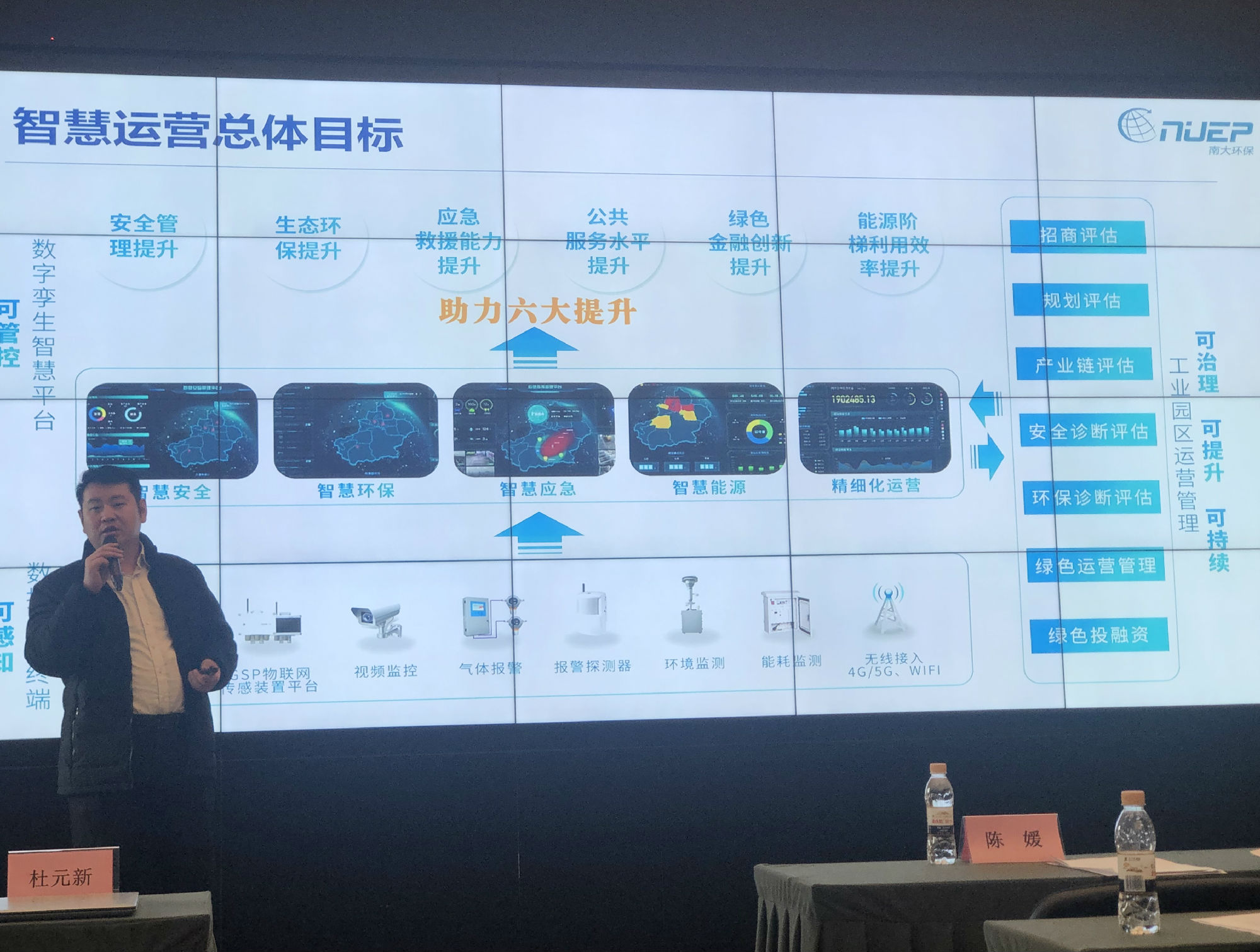 會上,南大環保總經理呂振華做了“新型智慧化工園區一體解決方案”的精彩主題演講。呂振華向與會代表介紹了新型智慧化工園區發展和應用特點,分享了南大環保一直致力于通過“可感知、可管控、可治理、可提升、可持續”的新型工業園區第三方服務,圍繞“安全、環保、應急、封閉管理”四大系統難點,讓客戶享受到從“規劃、產品、工程、運營”的全生命周期服務。