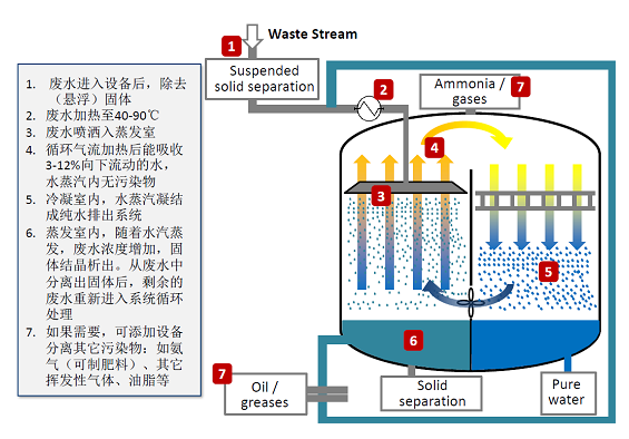 該技術(shù)屬于低溫蒸發(fā)技術(shù),蒸發(fā)溫度40~90℃;自動(dòng)化程度高。