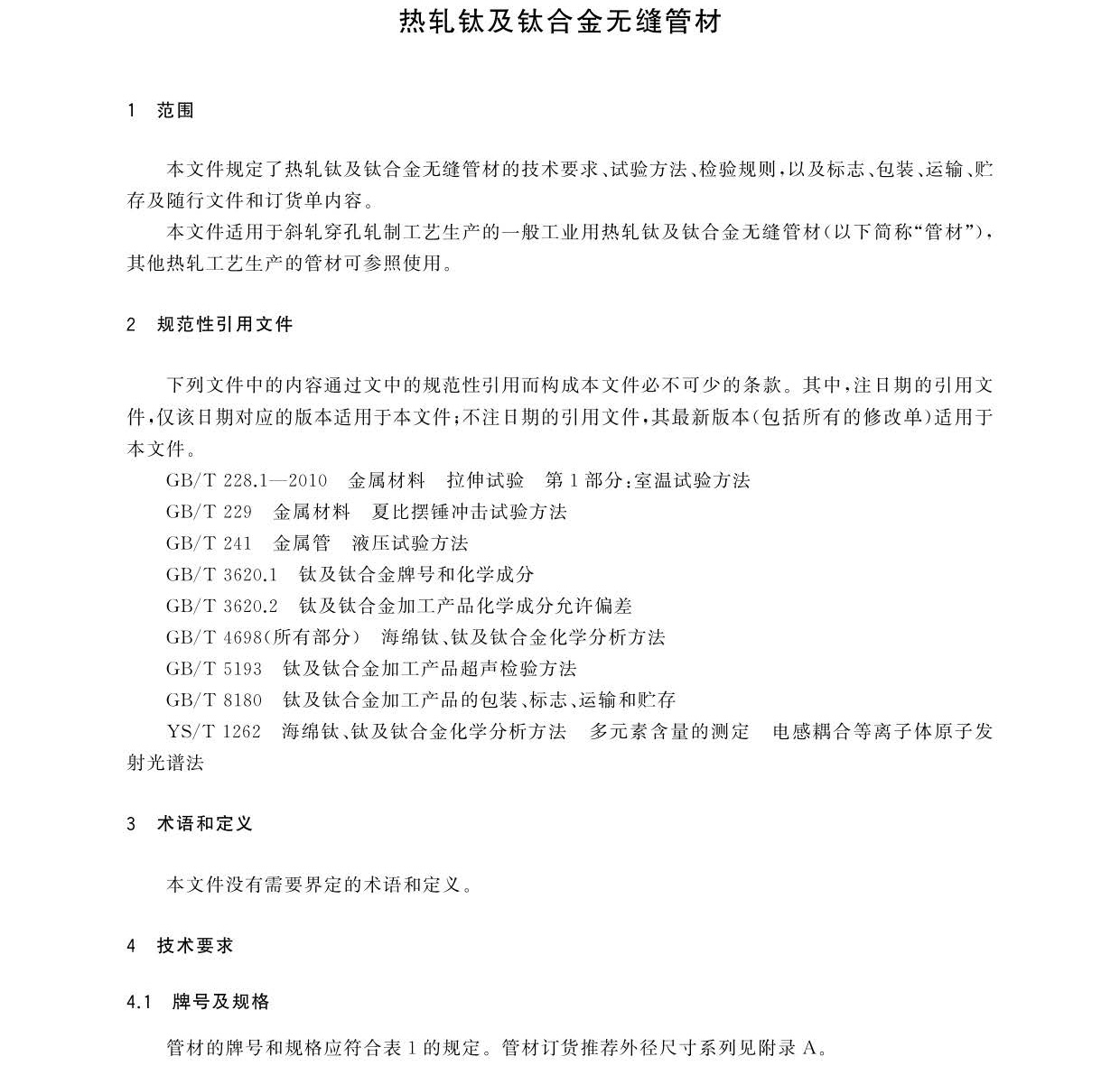 《熱軋鈦及鈦合金無縫管材國家標準GB/T 39856-2021》,該標準適用于斜軋穿孔軋制工藝生產的一般工業用熱軋鈦及鈦合金無縫管材,其他熱軋工藝生產的管材可參照使用。該標準的詳細規范內容,寶雞巨偉鈦業,整理如下: